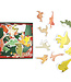Er zijn 49 unieke puzzelstukjes, elk in de vorm van een hele dinosaurus, samen gegroepeerd met een asteroïde. Bouw het frame om de stukjes bij elkaar te houden en zet vervolgens de dino's in één grote groep in elkaar. Een super uitdaging voor dinoliefhebbers en fanatieke puzzelaars!