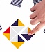 The box contains 64 cards (tiles) which all have a unique colour combination. Take a playing card from the stack and place it next to the cards on the table, in such a way that the colours on the edges match. The one who creates the most and largest colour fields wins the game. You can build your own colour fields or block the expansions of other players’ fields. Whatever strategy you choose, and whether you win or lose, the end result will always be a different and beautiful mosaic pattern.